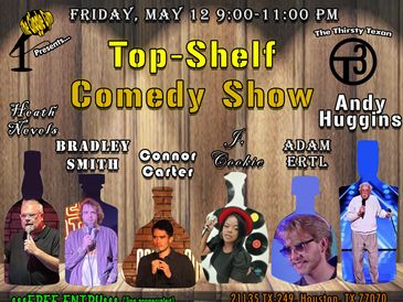 The Giggle Gym is excited to announce a comedy show May 12th at The Thirsty Texan! “ The Giggle Gym Presents the Top-Shelf Comedy Show“. Show starts at 9:00 PM.