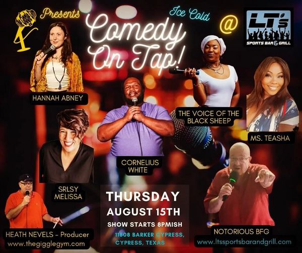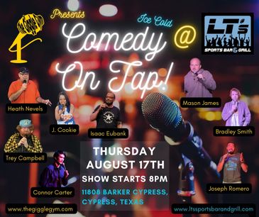 The Giggle Gym is excited to announce a comedy show August 17th at LT’s Sports Bar and Grill, “ The Giggle Gym Presents ”Ice Cold Comedy On Tap“! Show starts at 8:00 PM.