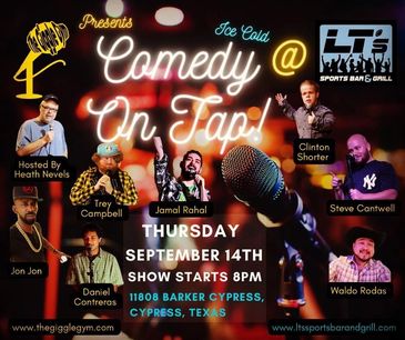 The Giggle Gym is excited to announce a comedy show September 14th at LT’s Sports Bar and Grill, “ The Giggle Gym Presents ”Ice Cold Comedy On Tap“! Show starts at 8:00 PM.
