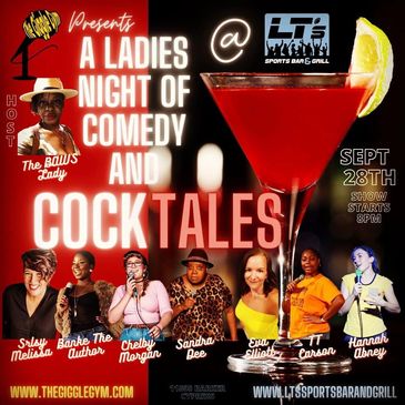 The Giggle Gym is excited to announce a comedy show September 28th at LT’s Sports Bar and Grill, “ The Giggle Gym Presents ”A Ladies Night of Comedy and Cocktales“! Show starts at 8:00 PM.