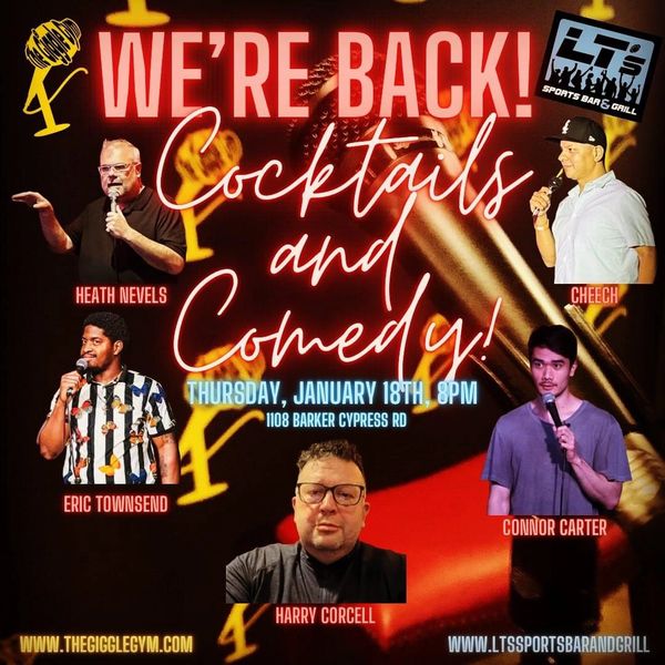 The Giggle Gym is excited to announce a comedy showcase at LT’s Sports Bar and Grill on January 18th. The Giggle Gym presents “Cocktails and Comedy”! Show starts at 8:00 PM.