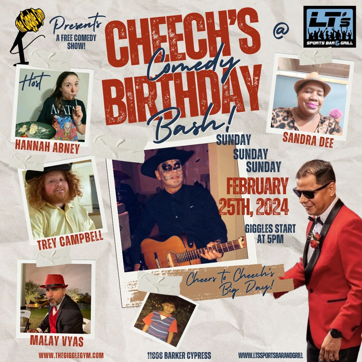 The Giggle Gym is excited to announce a special comedy showcase at LT’s Sports Bar and Grill on February 25th. The Giggle Gym presents “Cheech’s Comedy Birthday Bash”! Show starts at 5:00 PM.