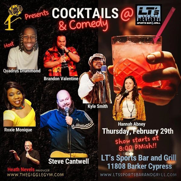 The Giggle Gym is excited to announce a comedy showcase at LT’s Sports Bar and Grill on February 29th. The Giggle Gym presents “Cocktails and Comedy”! Show starts at 8:00 PM.