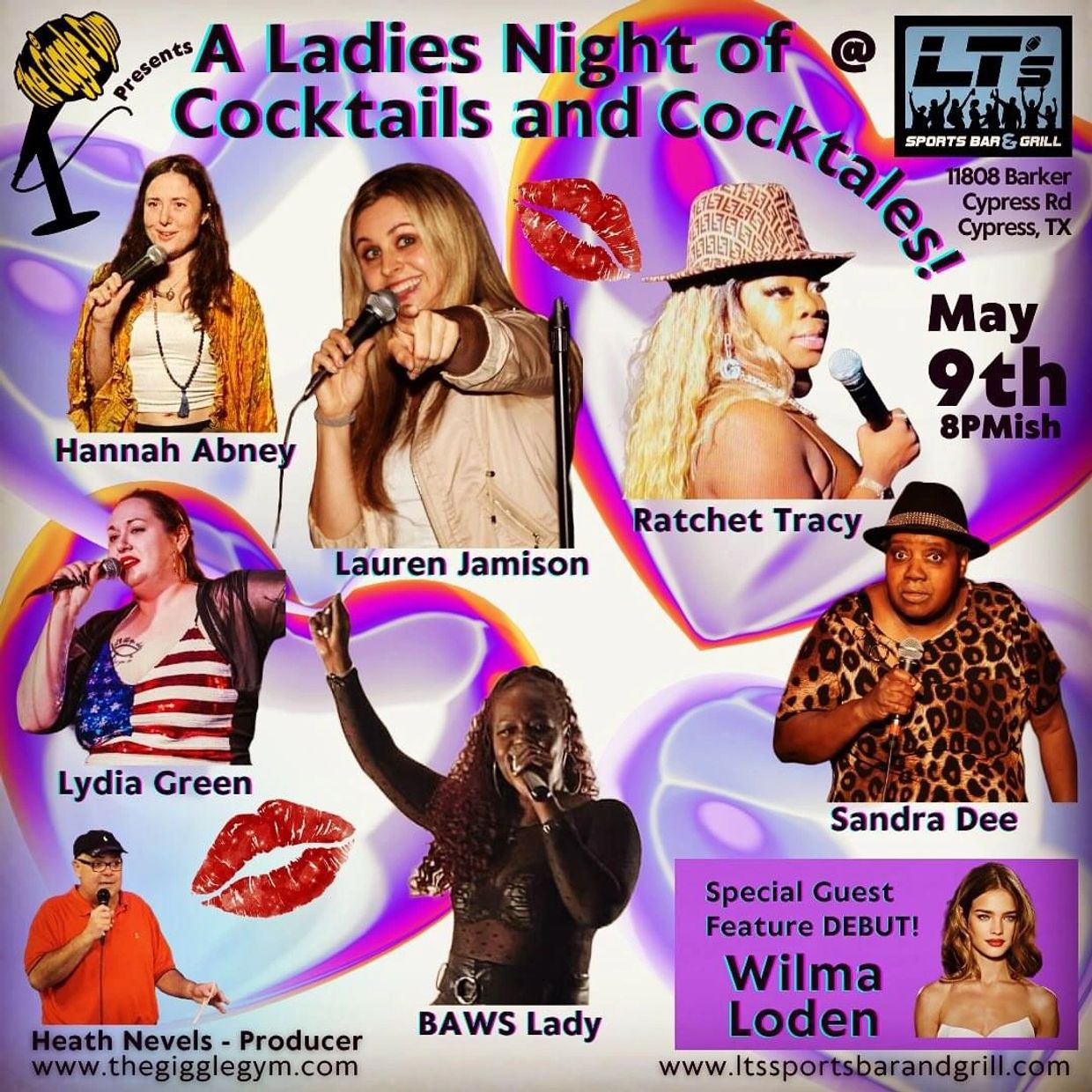 The Giggle Gym is excited to announce a comedy showcase at LT’s Sports Bar and Grill on May 9th. The Giggle Gym presents “A Ladies Night of Cocktails and Cocktales!” Show starts at 8:00 PM.