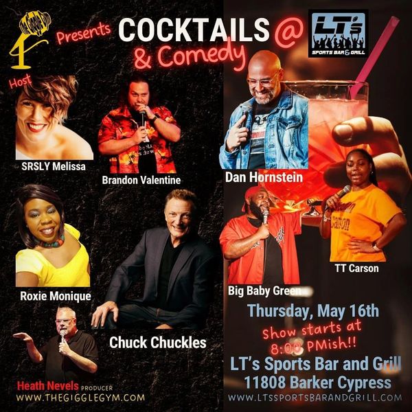 The Giggle Gym is excited to announce a comedy showcase at LT’s Sports Bar and Grill on May 23rd. The Giggle Gym presents “Cocktails and Comedy!” Show starts at 8:00 PM.