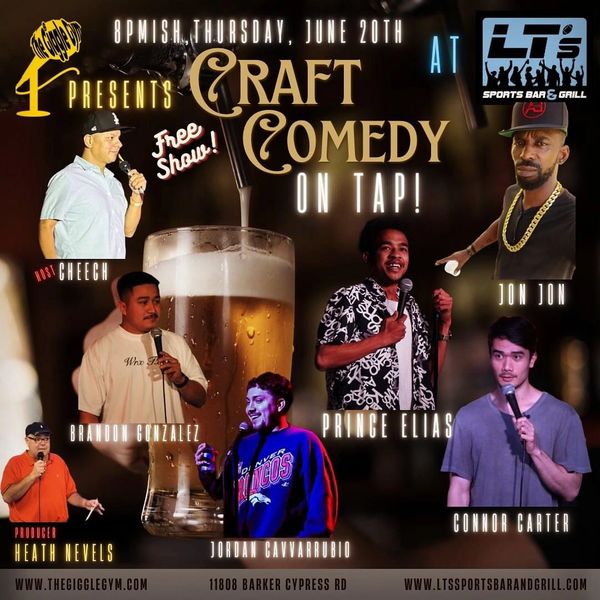 The Giggle Gym is excited to announce a comedy showcase at LT’s Sports Bar and Grill on June 20th. The Giggle Gym presents “Craft Comedy on Tap!” Show starts at 8:00 PM.