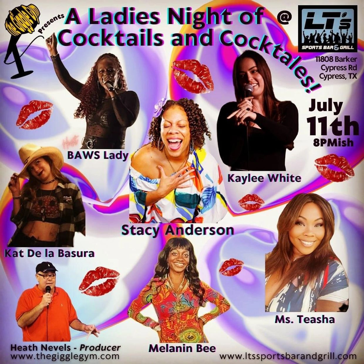 The Giggle Gym is excited to announce a comedy showcase at LT’s Sports Bar and Grill on July 11th. The Giggle Gym presents “A Ladies Night of Cocktail and Cocktales!” Show starts at 8:00 PM.
