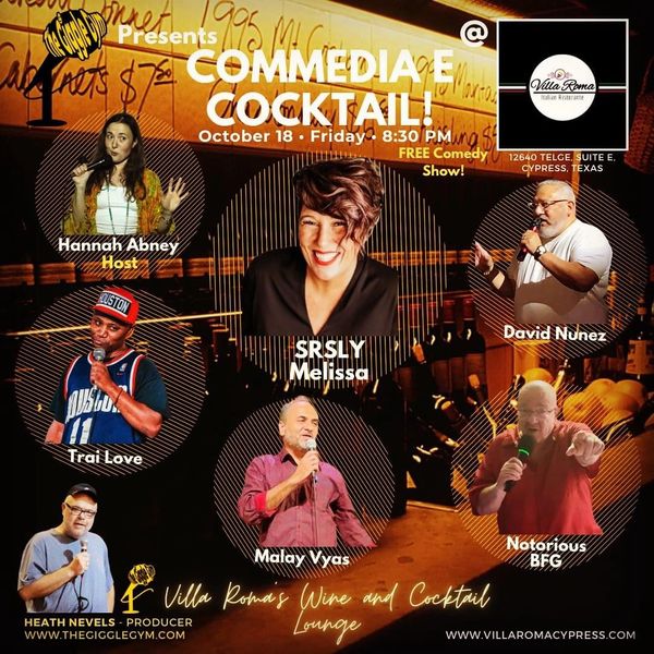 The Giggle Gym is excited to announce a comedy showcase at Villa Roma’s Wine and Cocktail Lounge October 12th. The Giggle Gym presents “Commedia E Cocktail”! Show starts at 8:30 PM.