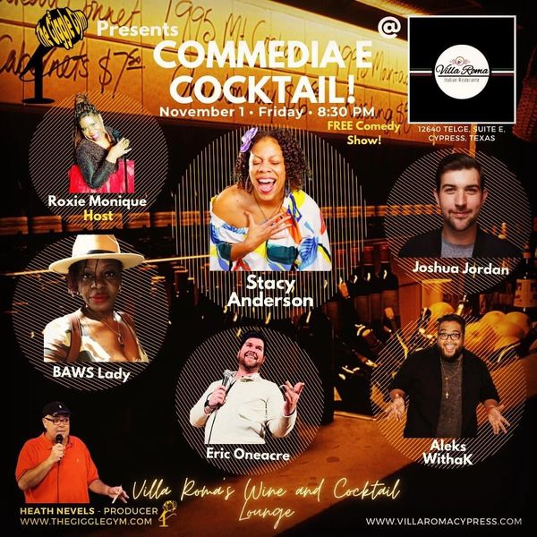 The Giggle Gym is excited to announce a comedy showcase at Villa Roma’s Wine and Cocktail Lounge November. 15th. The Giggle Gym presents “Commedia E Cocktail”! Show starts at 8:30 PM.