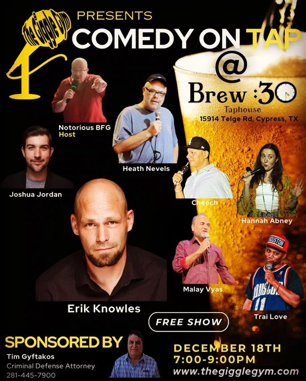 The Giggle Gym is excited to announce the inaugural comedy show at Brew:30, on Wednesday, December 18th at 7PM. Come be a part of Comedy on Tap and see some of Houston’s funniest comics.